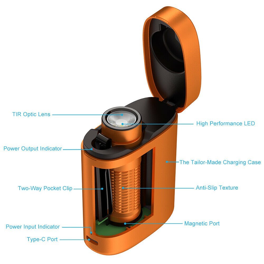Olight Baton 3 Flashlight - Premium Edition w/charging case - Orange