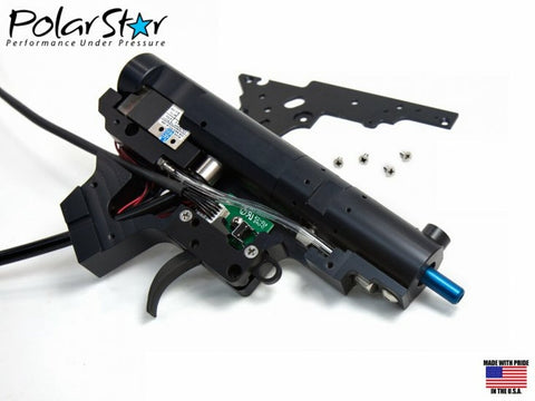 The PolarStar Gen3 V2 Fusion Engine takes place of any Ver. 2 AEG Gearbox as a direct drop-in. It is powered via a High Pressure Air (HPA) setup and only requires a small battery (7.4v-9.6v NiMH or Lipo recommended) to power the onboard computer known as the Fire Control Unit (FCU). This kit comes with the necessary core parts to convert your AEG M4 / M16 to the Fusion System, and can be used with other Ver 2 Airsoft AEGs by replacing the selector plate, trigger and Fusion Engine nozzle (additional FE nozzles, triggers and selector plates not included). HPA stabilizer and tank required but not included.